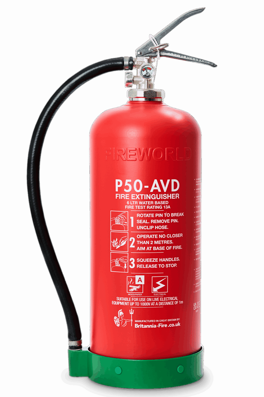 The P50 eco foam, wet chemical and powder fire extinguishers have passed all legal and safety standards for use on electrical fires, with a dielectric rating of 1,000v.